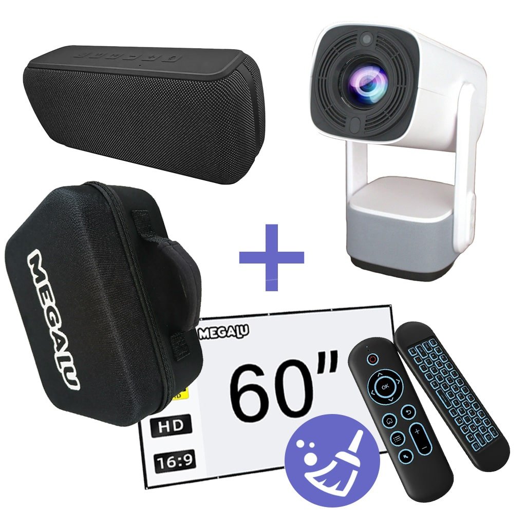 Balíček Domácího Kina PREMIUM Delux Bílý přináší vše, co potřebujete pro špičkové promítání filmů, her i prezentací – doma, venku i na cestách. Součástí balení je projektor MEGALU Delux Bílý s HD rozlišením, podporou 4K dekódování a systémem Android 11, AMO chytrý ovladač s podsvícenou klávesnicí pro pohodlné ovládání ve tmě, přenosné projekční plátno 60", odolné ochranné pouzdro DELUX z EVA materiálu a profesionální čištění projektoru MEGALU pro maximální jas, tichý provoz a delší životnost.