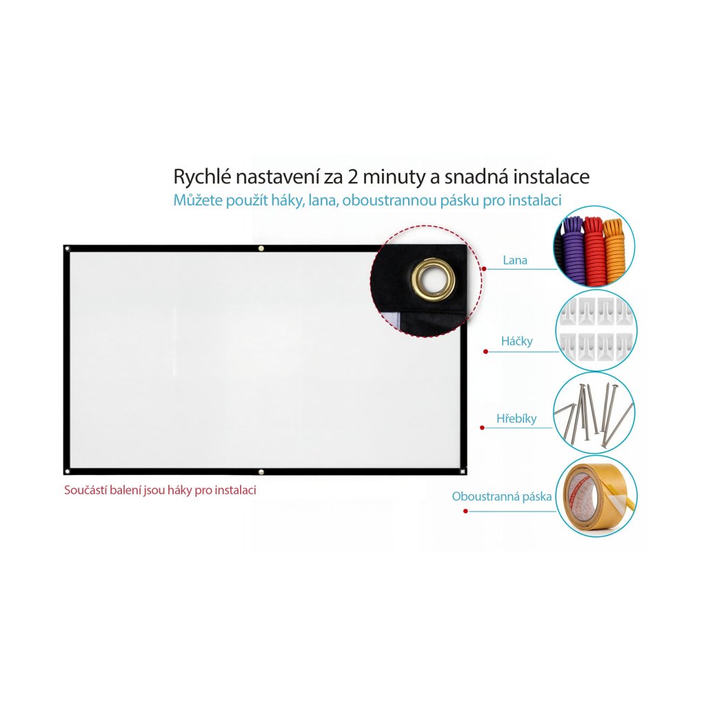 Přenosné projekční plátno – 72 palců 155 × 87 cm • přenosné projekční plátno • přední i zadní promítání